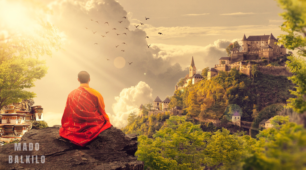 Der Buddhist sucht Tugend, Weisheit und Meditation und erreicht sie durch eine Reihe von Verhaltensweisen und Handlungen, die auf Askese, Strenge, Gutes tun, Wissen und Eindämmung der Begierden basieren, und dafür praktiziert er eine psychologische Übung, die auf Meditation basiert, um Frieden zu erreichen und Erlösung.